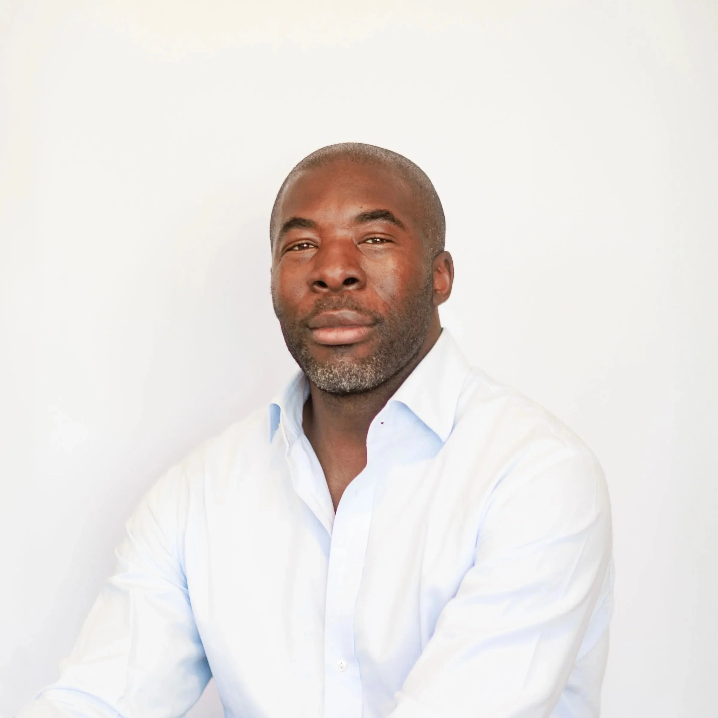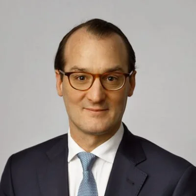 • A professional man with gray hair wearing a dark suit and white shirt, standing indoors with a blurred background.